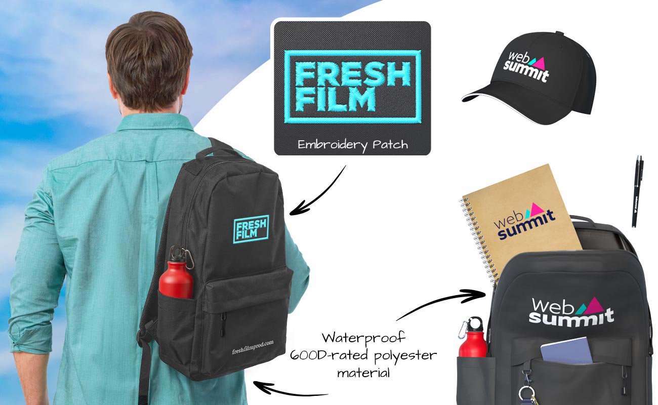 The product can be branded using a technique called Embroidery, in up to 4 different colors. Logo Artwork should be high resolution and 300DPI. You can send us your files as .png, jpeg or .gif formats.