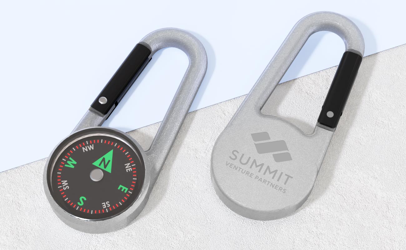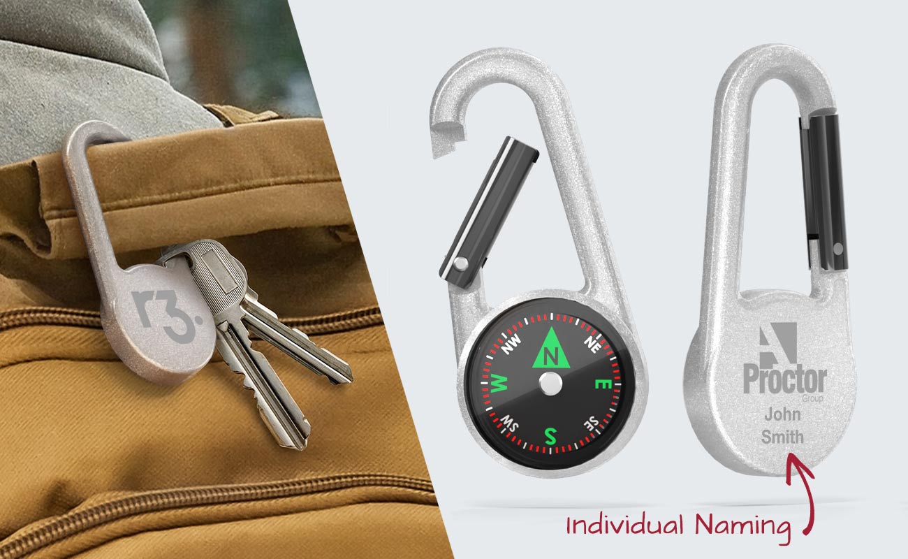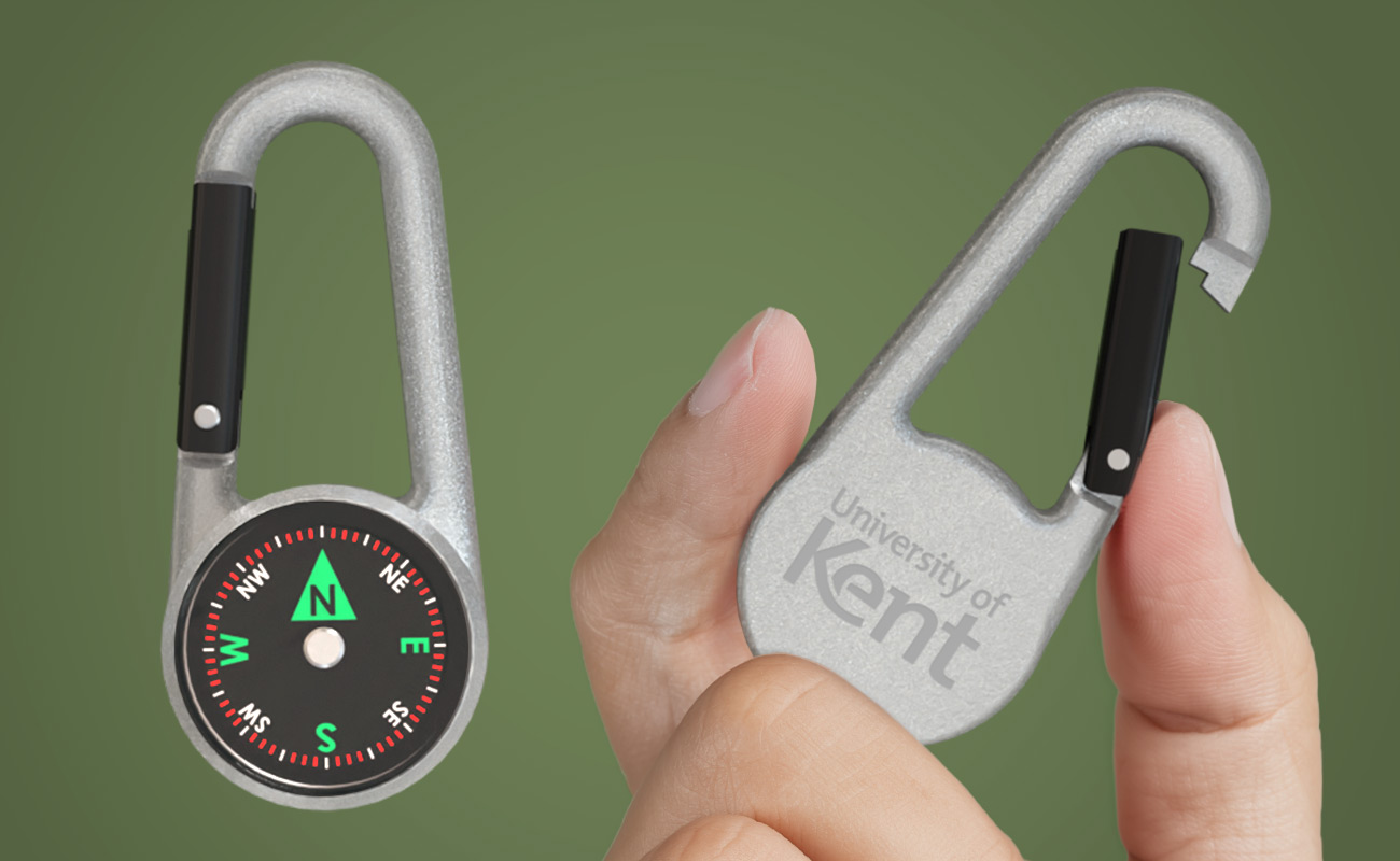 The WayPoint Compass Carabiner is a handy keyring that goes where you go. The magnetic needle is suspended in oil to ensure smooth rotation, and the outer shell is made of zinc alloy - it also features a secure spring-loaded clasp. The back of the WayPoint features a dedicated branding area to showcase your logo. Contact us today for our latest prices, samples and express delivery times.