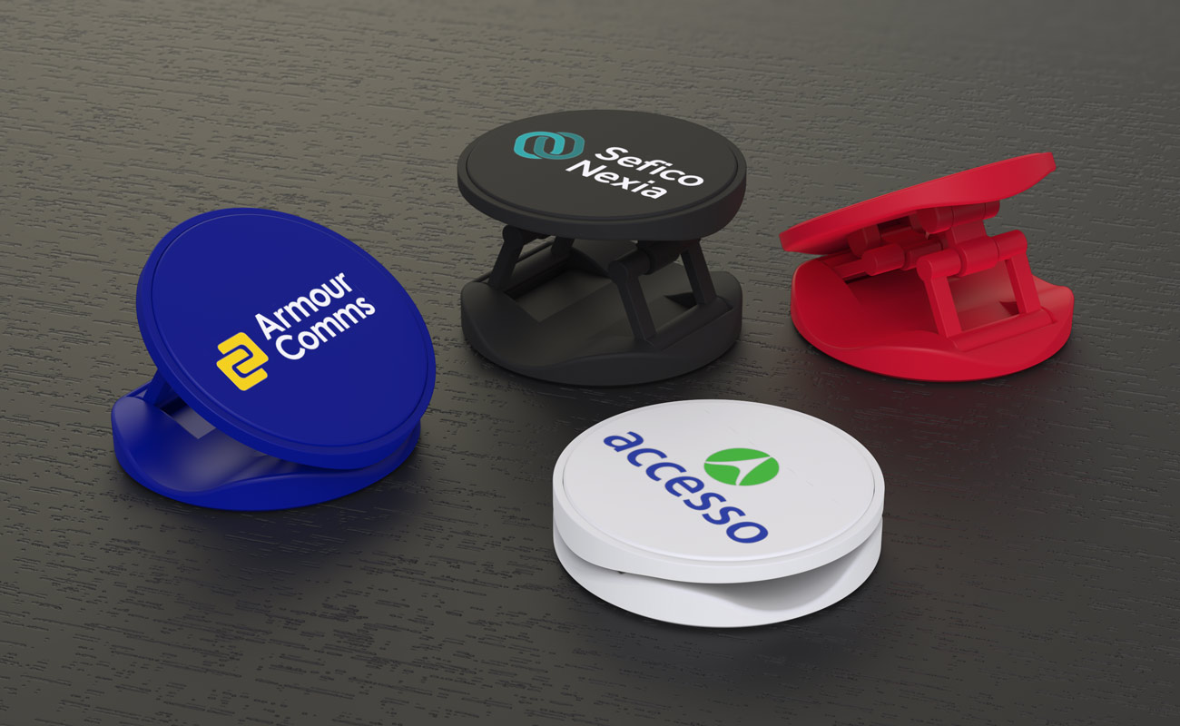 Our Hoop Finger Ring Stand features a stunning silver finish and enlarged branding area, ready to be Photo Printed with your logo, image, slogan and more. The adhesive backing and super-slim design means the Hoop is compatible with all major smartphones. The Hoop also features a handy kickstand, perfect for watching videos on your phone. A super-popular model for Conferences, Events and Giveaways.